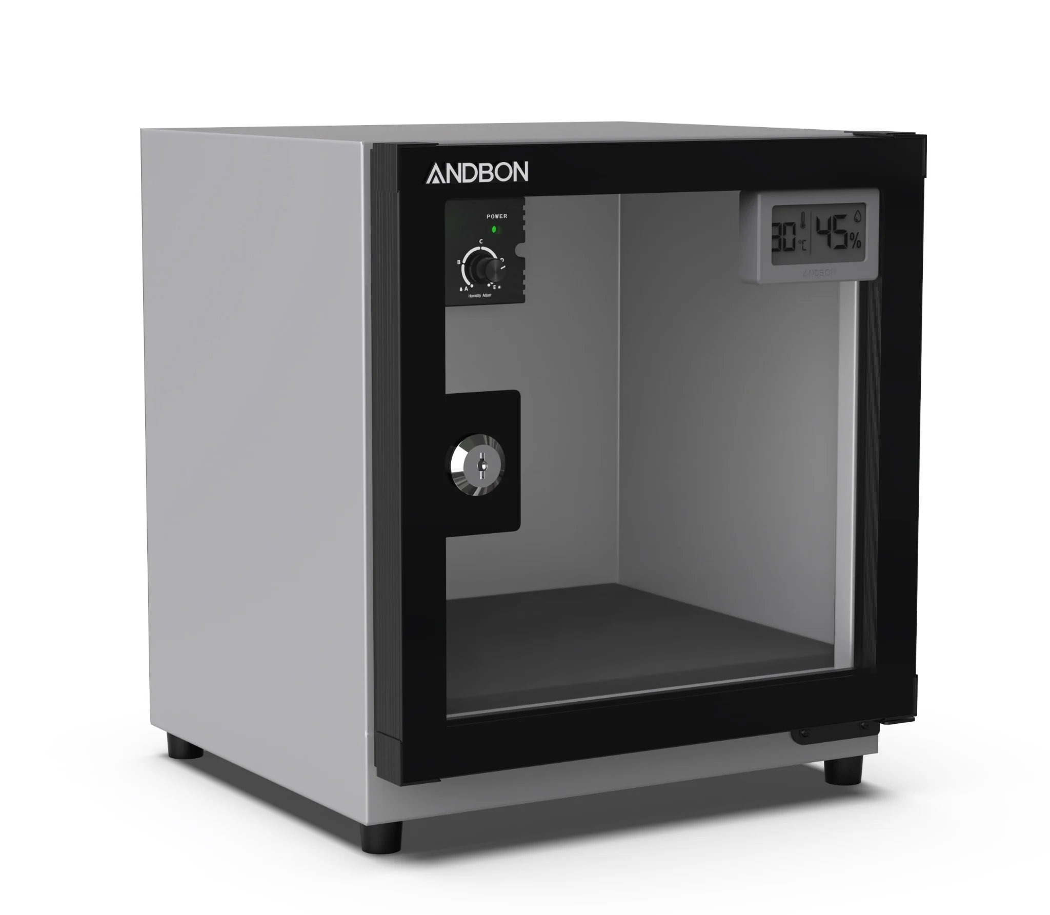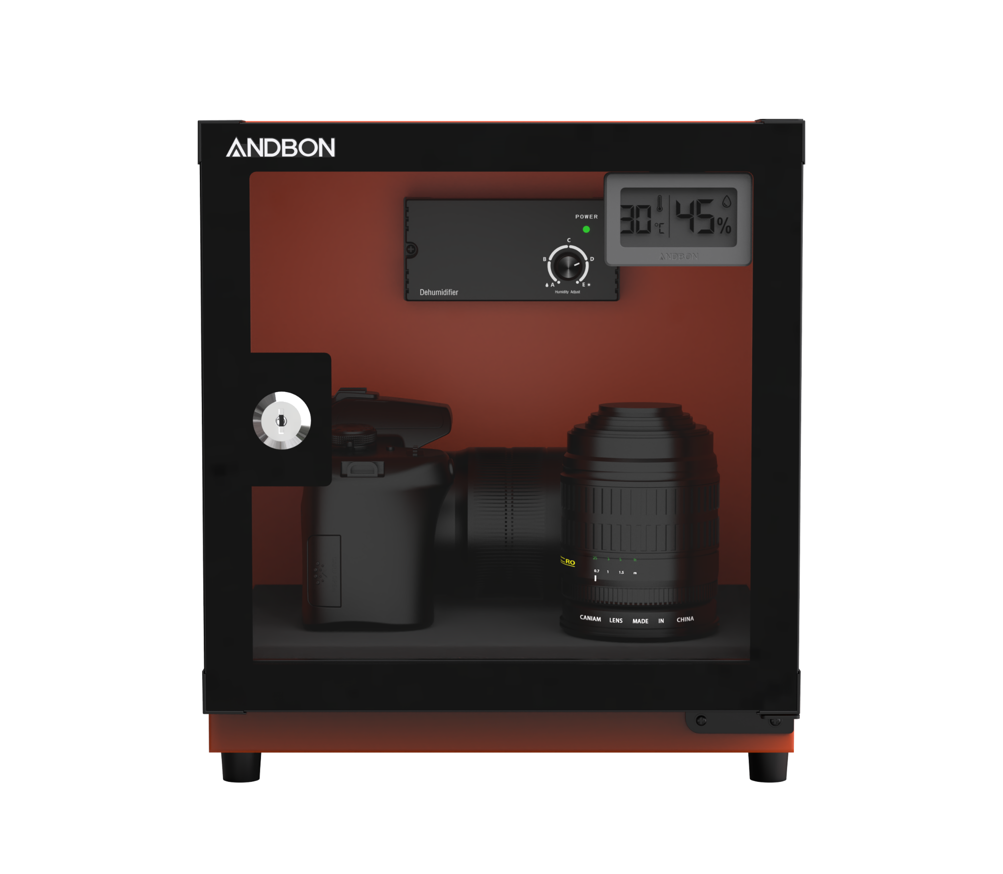 Tủ Andbon AB-18C được thiết kế với một khoang duy nhất, tập trung vào chức năng bảo quản chính. Cửa tủ được làm từ kính hai lớp chống xước và chịu va đập tốt, kết hợp với hệ thống gioăng cao su kín khít, ngăn chặn tuyệt đối sự xâm nhập của hơi ẩm từ bên ngoài. Bên cạnh đó, ổ khóa an toàn giúp bảo vệ các vật dụng bên trong khỏi những tác động không mong muốn.
