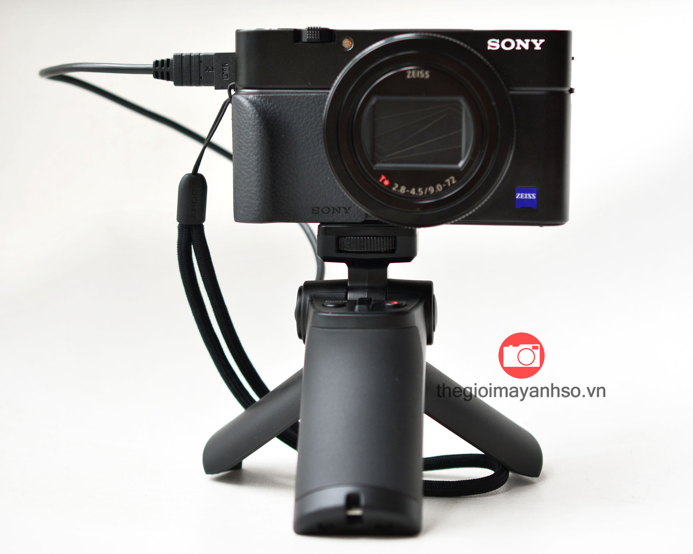 Để tăng tính tiện lợi, hai chân máy có thể mở ra từ báng chụp để biến báng cầm tay Sony GP-VPT1 thành tripod mini, cho phép bạn đặt chân máy lên bàn để sử dụng rảnh tay.