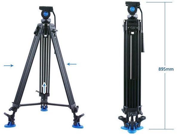 3 chân của Benro Video Tripod KH26P được thiết kế đế chống trượt và có thể gấp lại hay xòe ra tiện dụng, chiều cao tối đa của Tripod là 1520mm nhỏ gọn phù hợp đặt trên bàn hay một số vị trí có diện tích nhỏ.