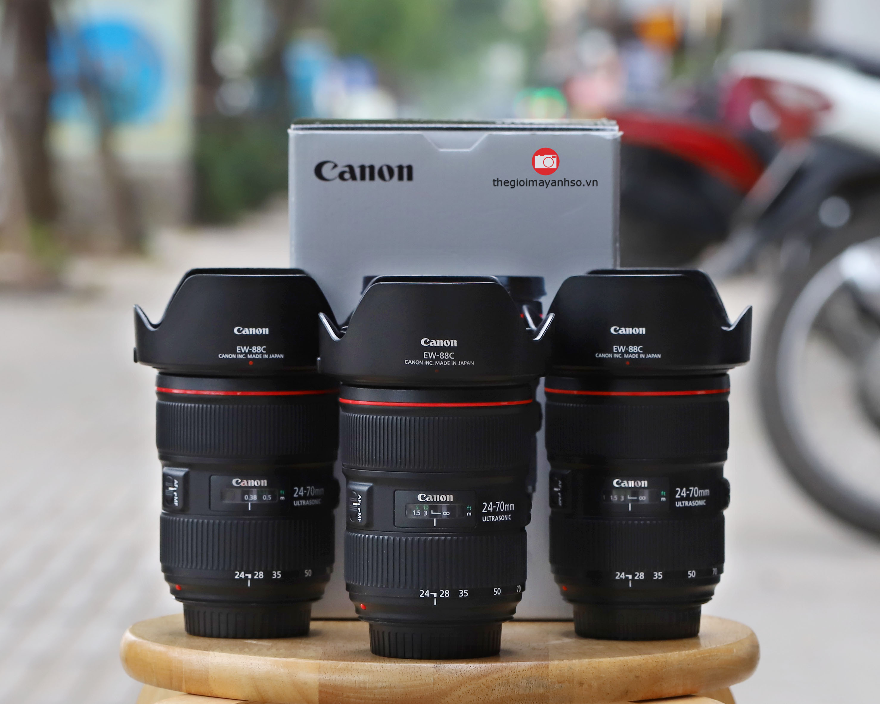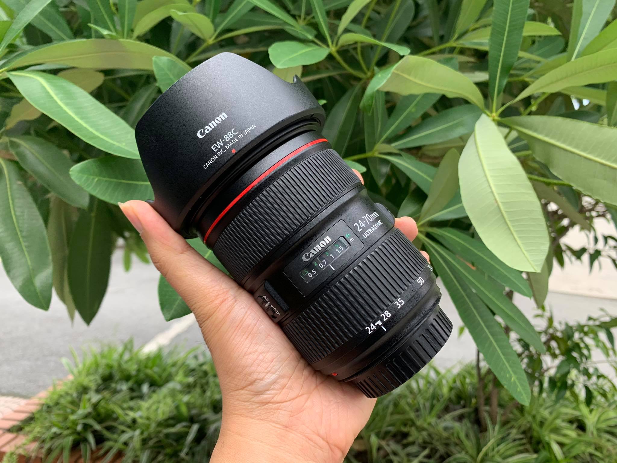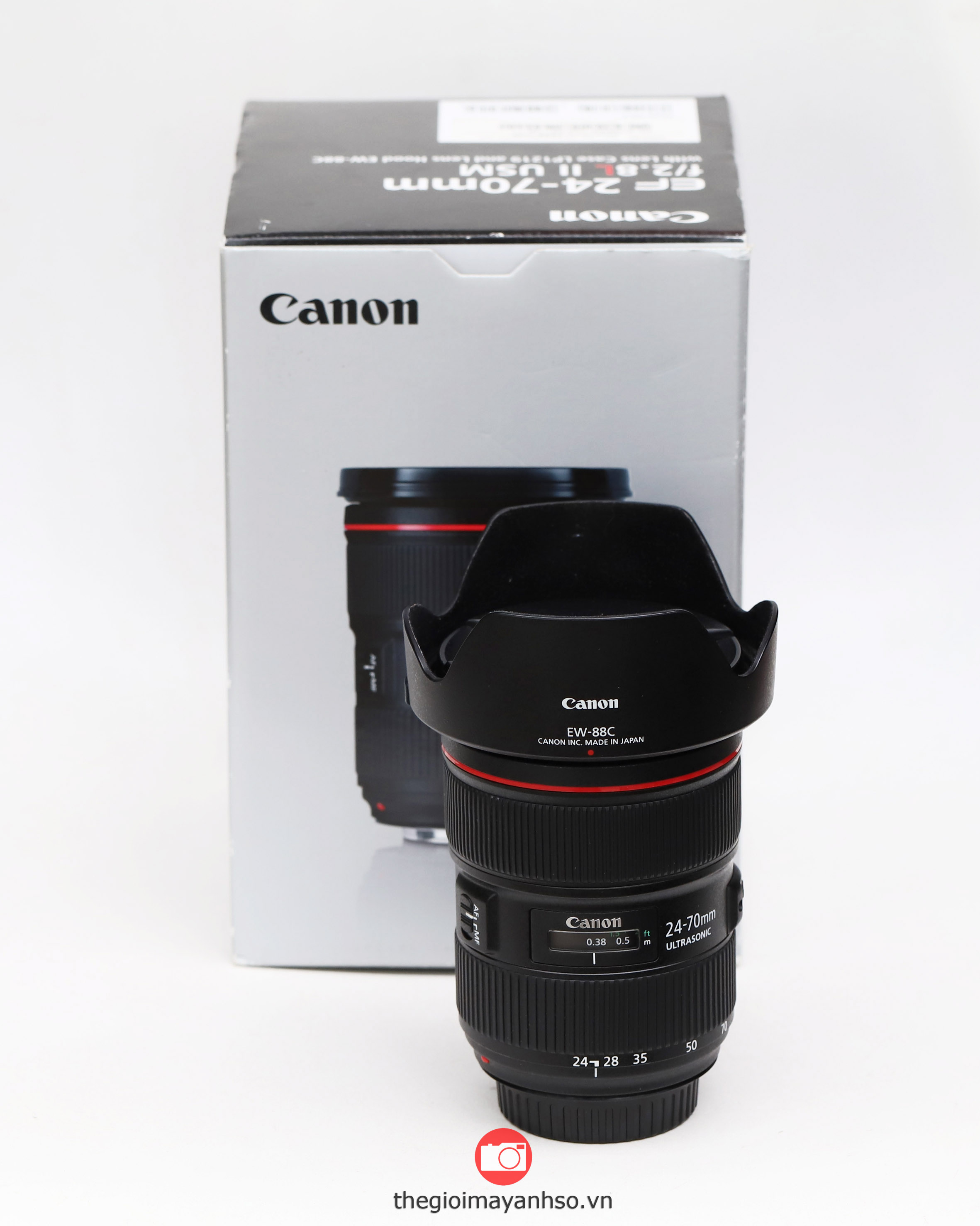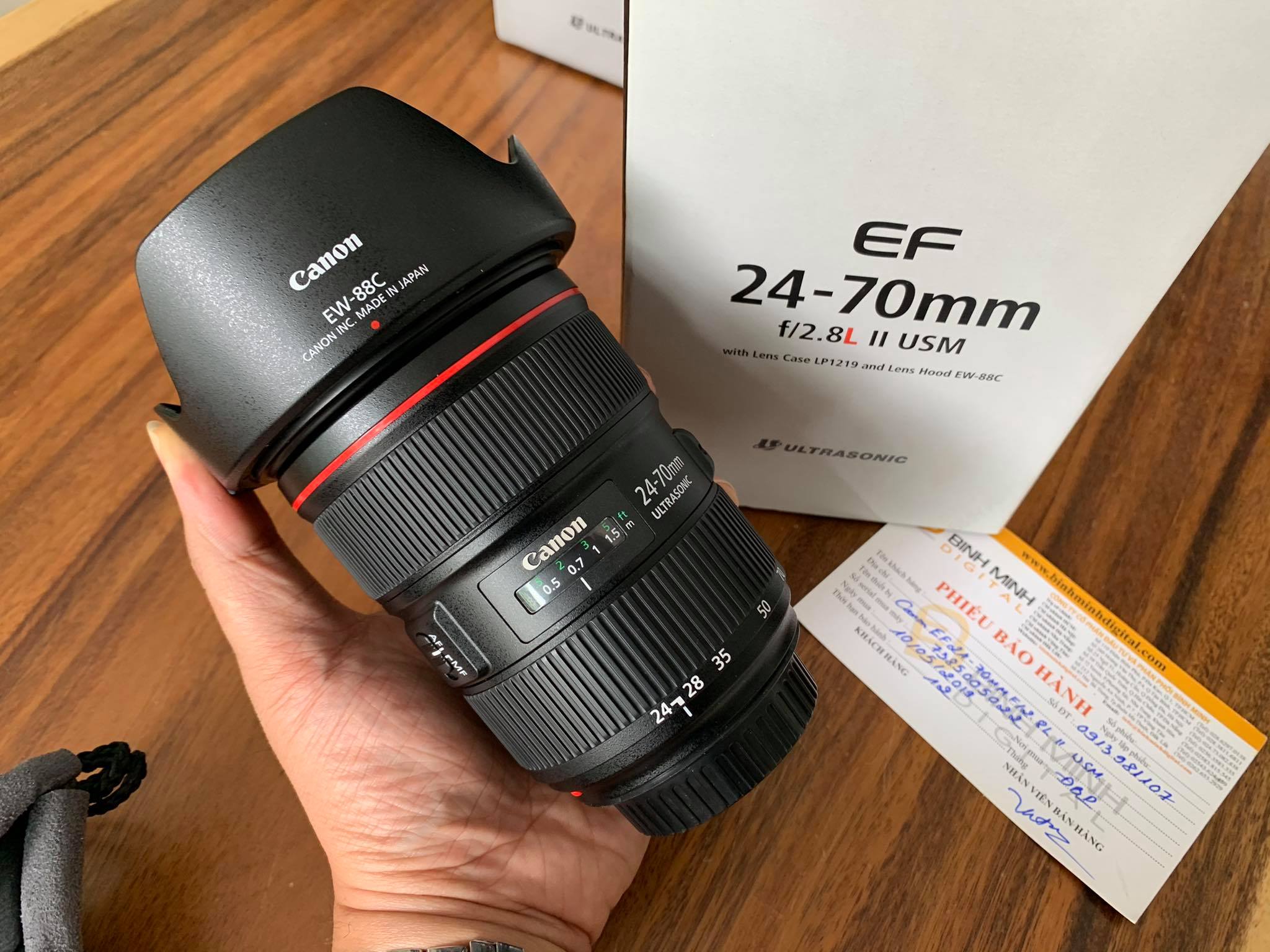 Phụ kiện kèm lens gồm hood EW-88C giá 1 triệu 2 và một túi đựng LP1219 giá 700 nghìn. Hood EW-88C chỉ lắp vừa Canon EF 24-70mm f/2.8 L II, không lắp vừa bất cứ lens nào khác.