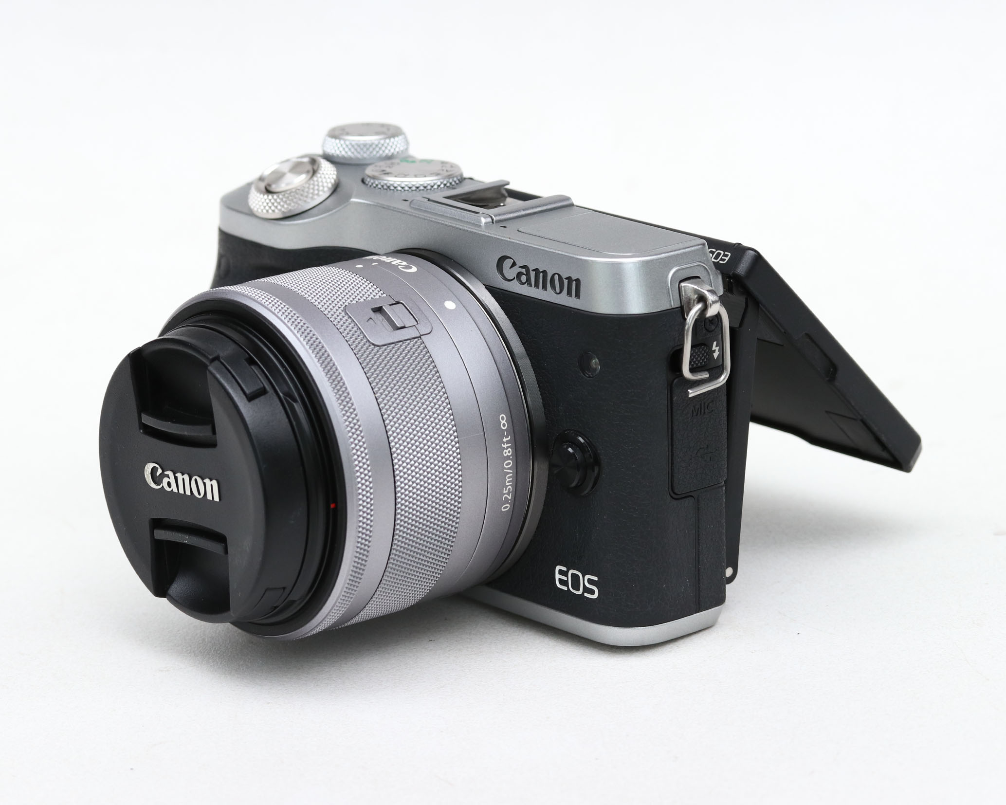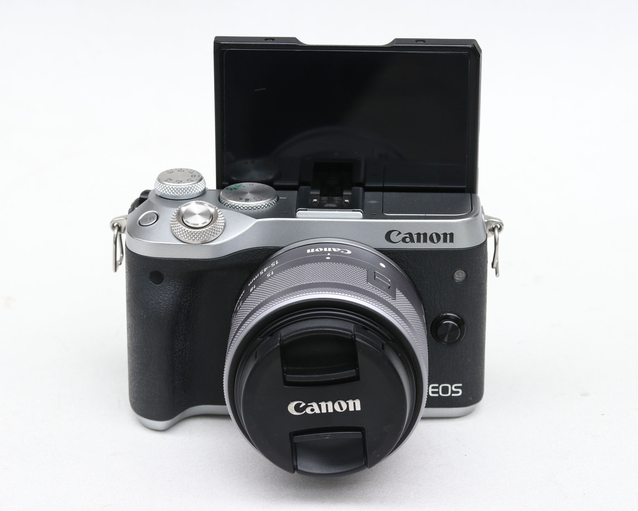 Canon M6 +Kit 15-45mm màu bạc được giới thiệu đến người dùng vào đầu năm 2017. Chiếc EOS M6 + Kit 15-45mm này được cho là sẽ thay thế cho EOS M3 trước đó và bán song song với chiếc EOS M5.
