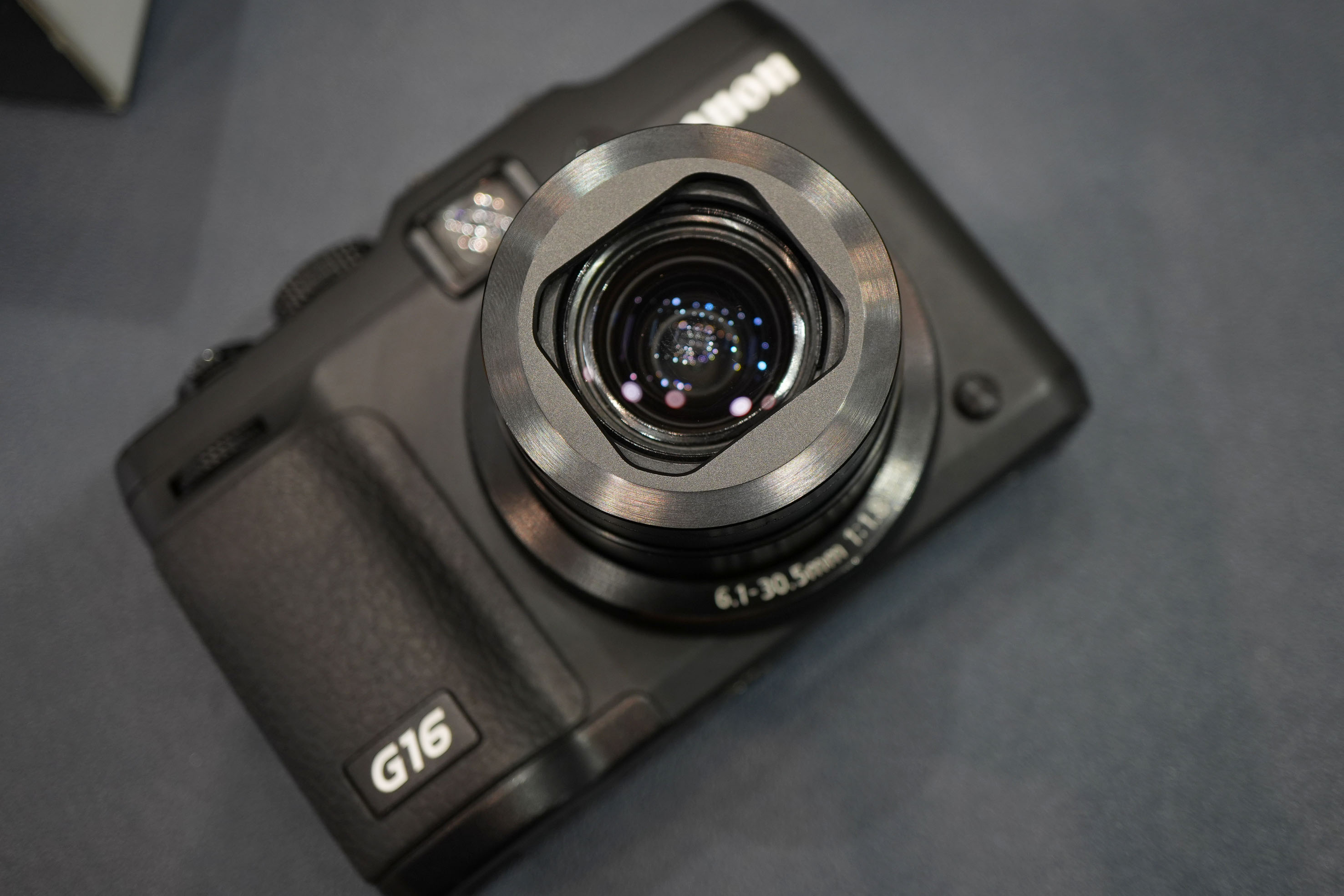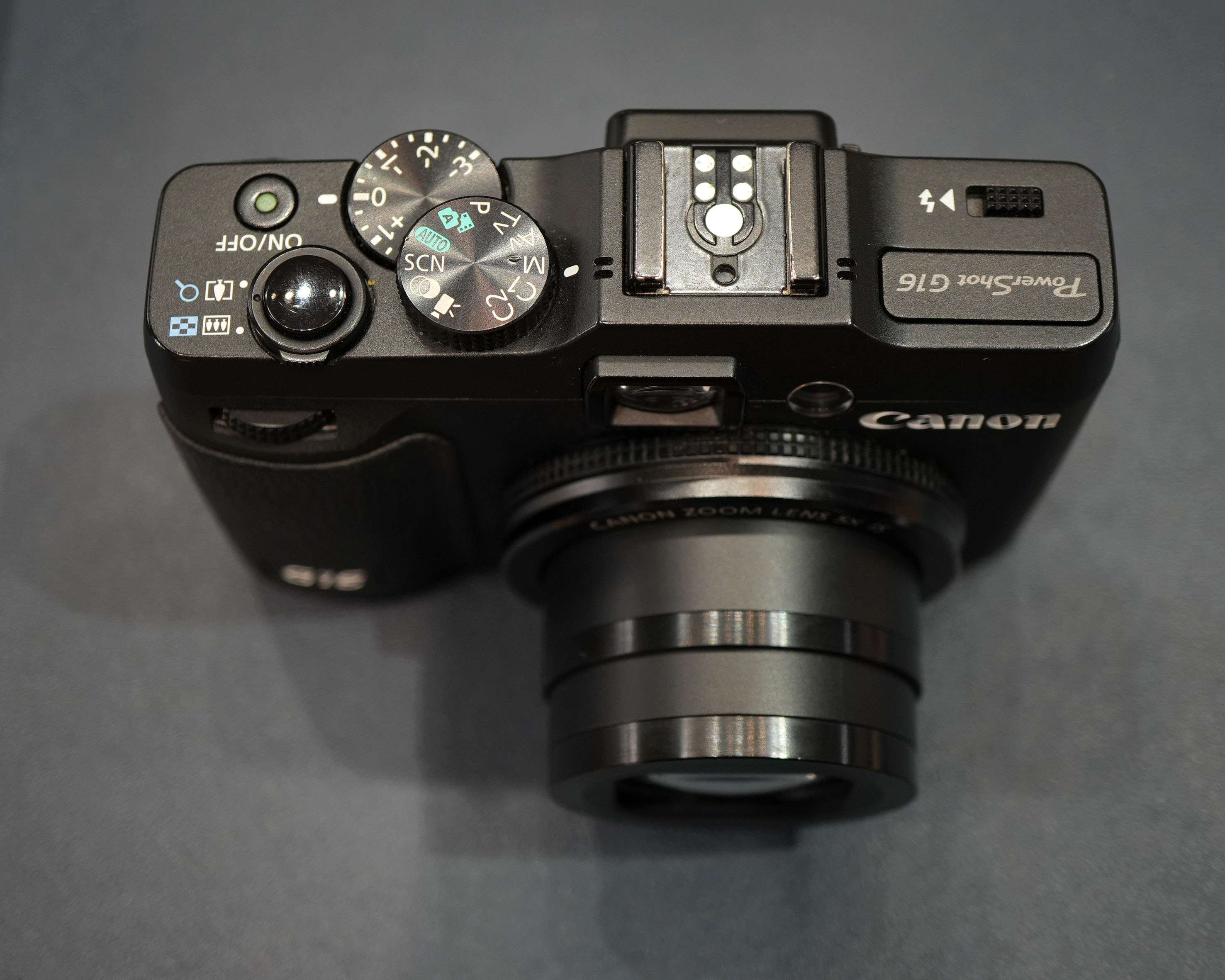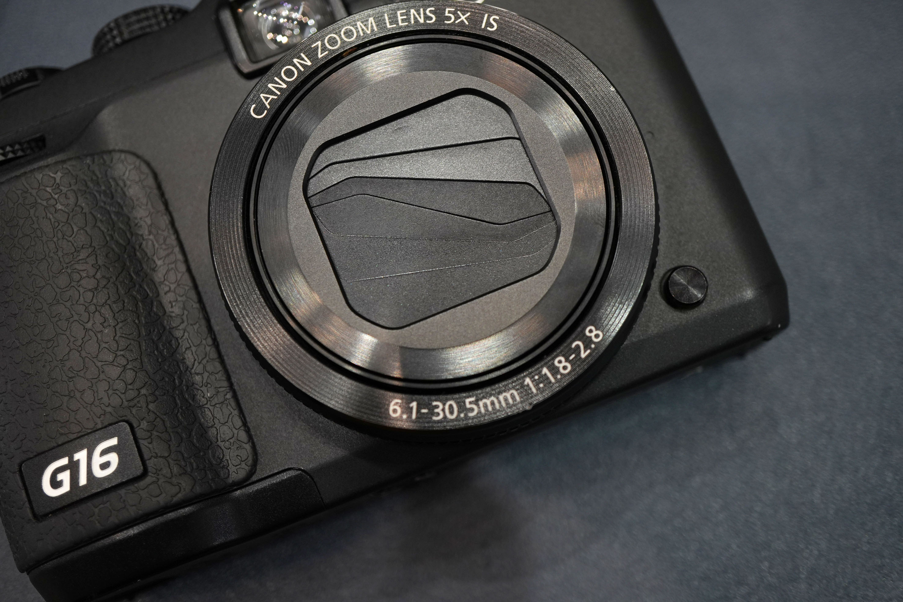 Bên cạnh những tính năng mới, G16 vẫn giữ một số điểm tương tự như G15 mà điển hình là ở ống zoom của máy.Canon G16 có ống zoom quang 5x f/1.8-f/2.8 với góc mở 28mm. Khi telezoom tối đa 5x thì tiêu cự tương đương 140mm so với hệ cảm biến fullframe và khẩu mở lớn nhất là f/2.8. Với tiêu cự 140mm f/2.8, tích hợp chống rung quang học, ống kính này được đánh giá khá cao do nó có tính linh hoạt hơn khi chụp trong điều kiện ánh sáng thấp.