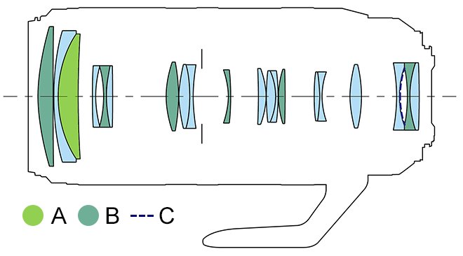 Ngoài ra, một lớp phủ flourine trên bề mặt thấu kính trước và sau bổ sung thêm khả năng chống dầu, nước bám vào ống kính, giúp dễ dàng lau sạch các vết ố và dấu vân tay.