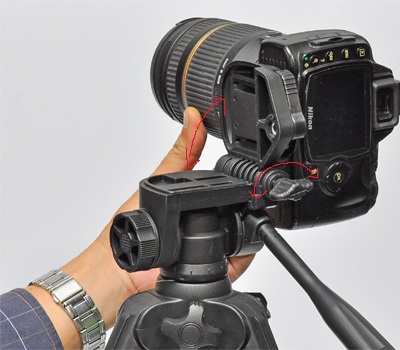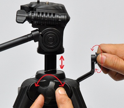 Khi sử dụng máy ảnh có trọng lượng nặng, có thể xoay ống của trục giữa theo chiều kim đồng hồ để góp phần tăng lực ép giữ trụ giữa giúp cố định về chiều cao.