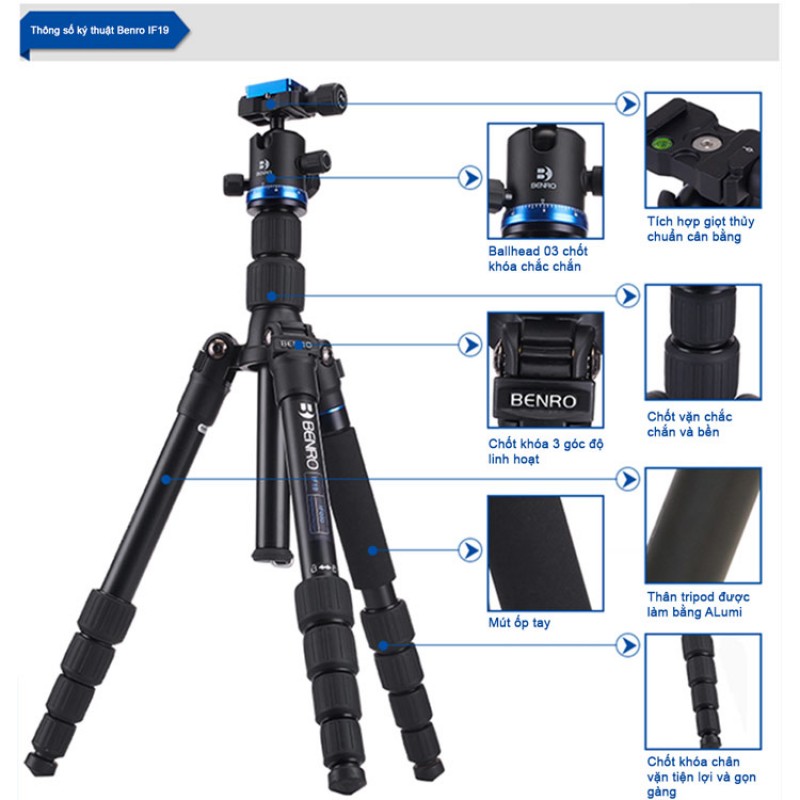 Benro FIF19AIB0 Nhôm Tripod Các tính năng chính: