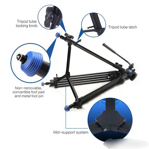 Chân máy được thiết kế chuyên nghiệp để quay video với chất liệu hợp kim nhôm cho tải trọng tối đa lên tới 5 kg giúp người dùng có thể sử dụng nhiều dòng máy quay có khối lượng lớn.