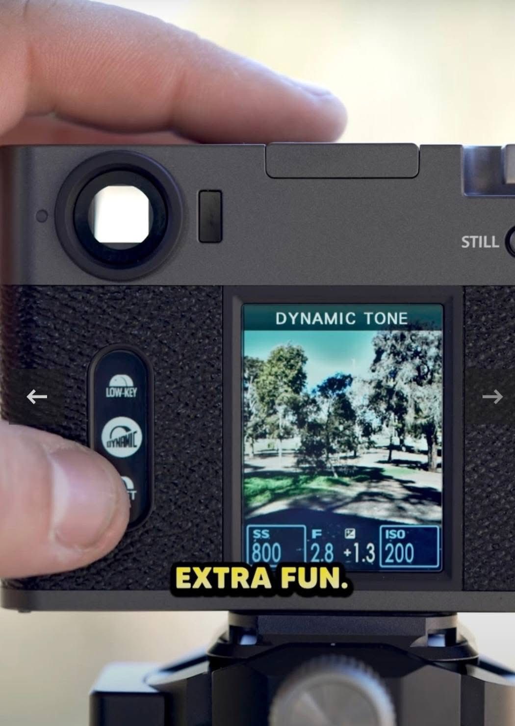 Màn hình LCD dọc là một trong những điểm nhấn của Fujifilm X-Half. Không giống các máy ảnh truyền thống với màn hình ngang, X-Half được thiết kế để chụp và xem nội dung theo định dạng dọc, phù hợp với cách người dùng tạo nội dung cho mạng xã hội. Màn hình này cũng hỗ trợ xem trước các ảnh diptych, giúp người dùng dễ dàng hình dung câu chuyện hình ảnh của mình.