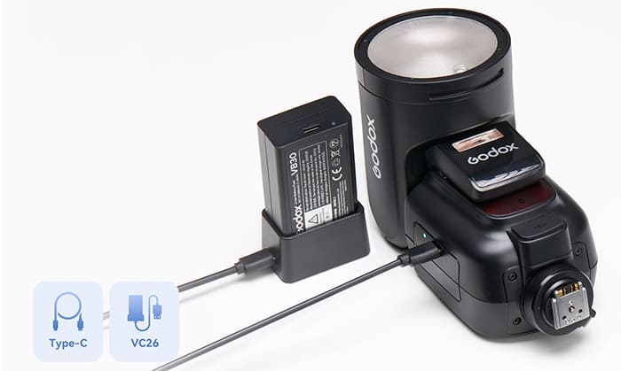Điểm mạnh của đèn flash Godox V1 Pro không chỉ là trong thiết kế và tính năng sáng tạo, mà còn ở khả năng quản lý nguồn điện linh hoạt, hiệu quả. Đèn flash này sử dụng pin sạc đi kèm, mang lại thời gian tái chế nhanh chóng chỉ trong 1,5 giây. Từ đó đảm bảo rằng bạn luôn sẵn sàng bắt kịp mọi khoảnh khắc hành động, mà không cần phải đợi lâu.