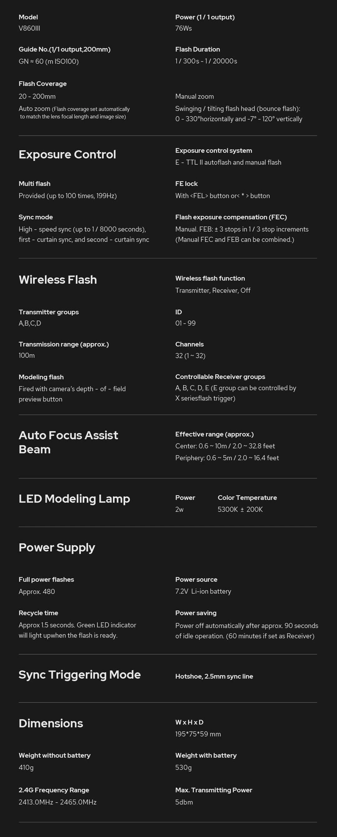 Thông số kỹ thuật Godox V860 III