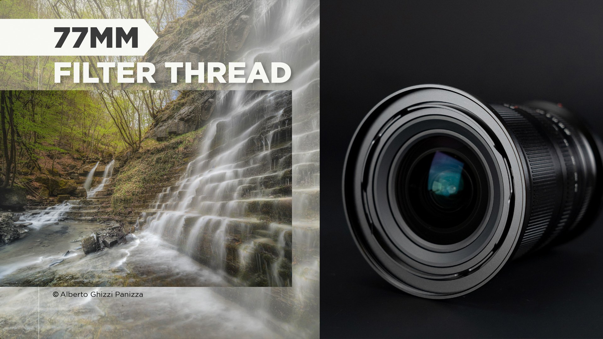 Một sợi lọc 77mm có thể được sử dụng khi gắn loa che nắng vào ống kính. Các nhiếp ảnh gia không phải mang theo các bộ lọc nặng nề, giúp việc di chuyển trở nên thuận tiện hơn.