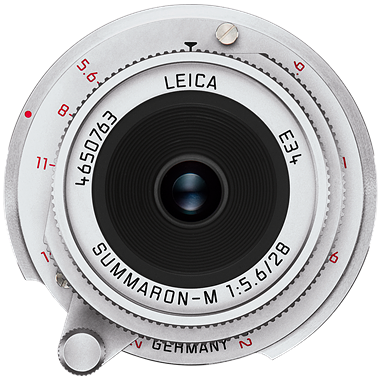 Ống kính Leica Summaron-M 28mm f/5.6 . Đây là chiếc lens nhỏ nhất trong các ống kính của dòng máy M, sở hữu chiều dài chưa tới 2cm cùng lớp phủ màu không phai theo thời gian. Một điểm đặc biệt nữa của phiên bản mới này là khẩu độ màu đỏ được khắc ở phần trước ống kính.