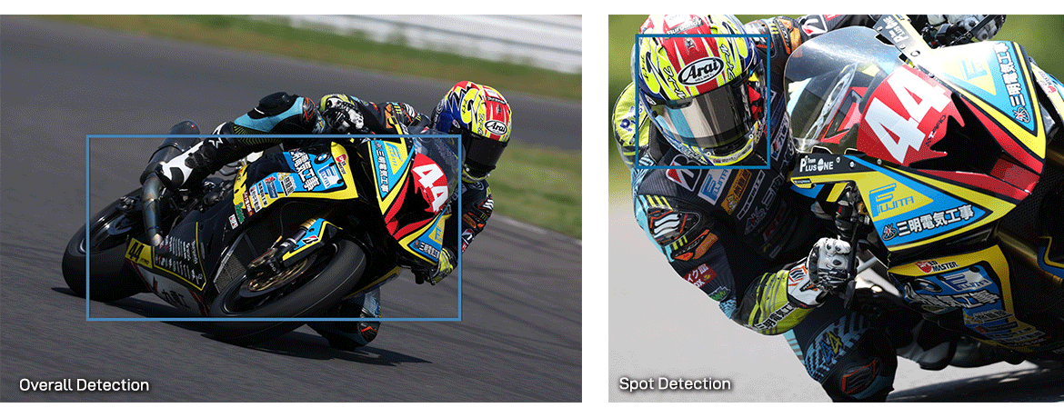 Bước đột phá mới mang tính cách mạng này trong công nghệ AF hiện nay cho phép phát hiện và nhận dạng ô tô và xe máy đang chuyển động nhanh trong các môn đua xe thể thao. EOS R3 có khả năng phát hiện tổng thể chiếc xe và cũng lấy nét cụ thể hơn của mũ bảo hiểm của người lái xe bằng cách sử dụng tính năng phát hiện điểm.