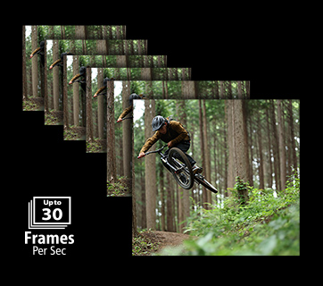 Thực hiện chụp liên tục tốc độ cao lên đến 30 khung hình / giây với màn trập điện tử (hoặc lên đến 12 khung hình / giây với màn trập cơ học).