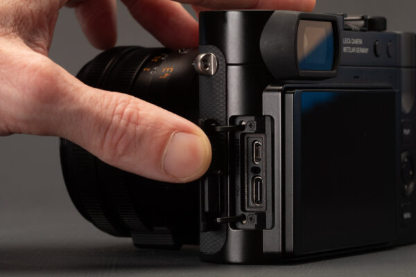 Sạc không dây với phụ kiện Khi được kết hợp với tay cầm sạc không dây HG-DC1, máy ảnh Leica Q3 43 hỗ trợ sạc pin không dây qua các đế sạc tương thích với chuẩn Qi như Drop XL Wireless Charger.
