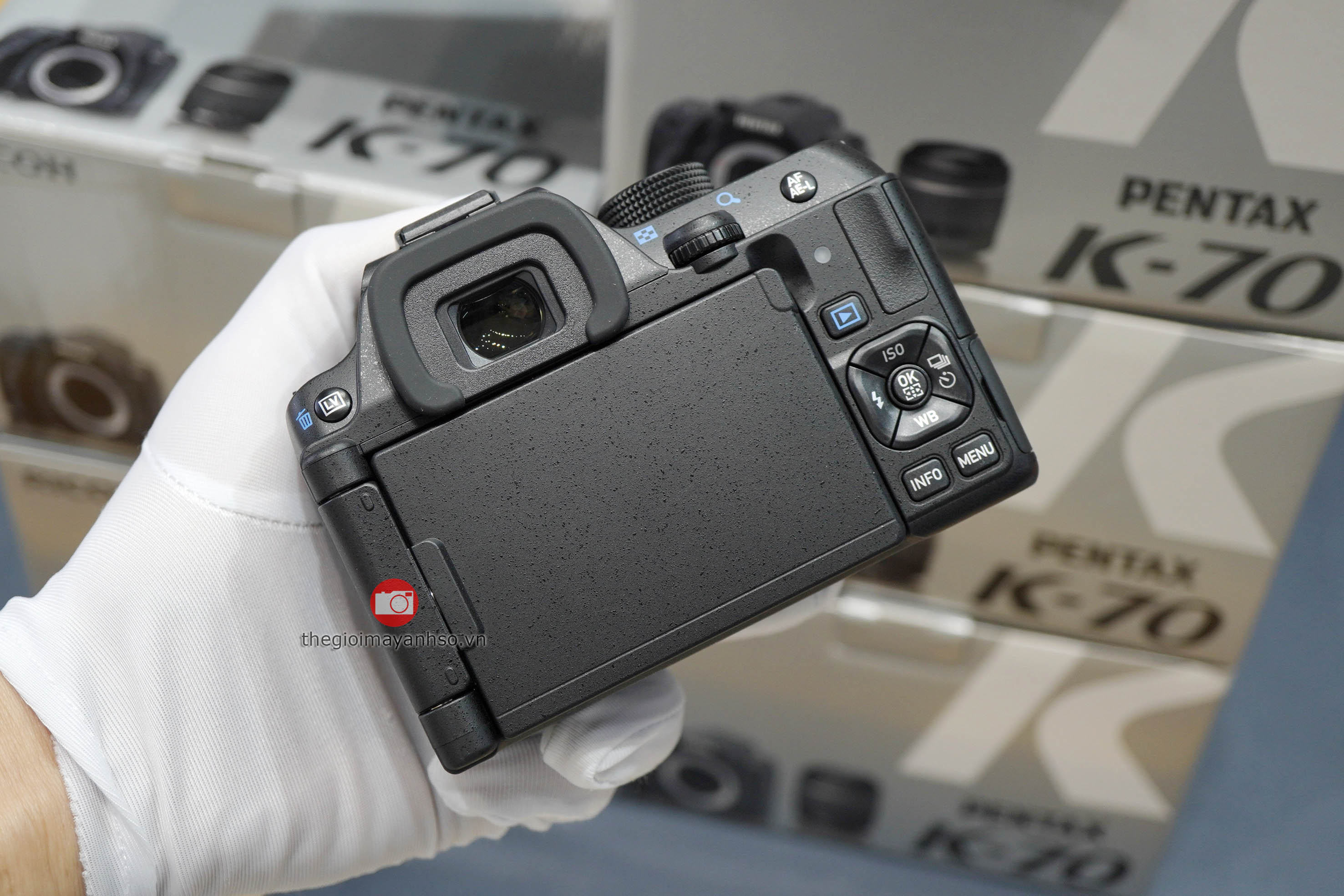 Chụp ảnh kỹ thuật số không giống như chụp phim, hư thì xóa chụp lại mấy hồi, K-70 lại là 1 chiếc máy cho người mới khởi đầu nhiếp ảnh nên nút "xóa" và nút "xem ảnh" như đặt để vào tay người dùng, ngón cái tay phải bật chế xem hình, cần zoom chi tiết thì rê lên bánh xe phía trên để zoom, nếu không ưng bức ảnh thì ngón cái tay trái lại nằm ngay nút xóa, chuẩn không chỉnh! Nhưng cũng xin nói thêm chính vì sự nuông chiều của Pentax như vậy nên khi mình cầm sang Nikon và Canon sẽ cảm thấy rất bối rối vì các ngón tay đã trở nên khá lạc lõng khi không được đặt để đúng vị trí.