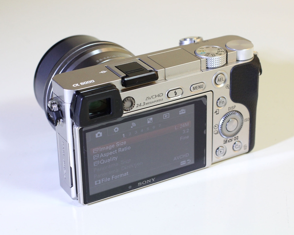 Thiết kế cấu trúc nhỏ gọn nhưng chiếc Sony A6000 (ILCE-6000 / ILCE-6000L) vẫn được trang bị đầy đủ ống kính ngắm điện tử OLED Tru-Finder 1440K điểm ảnh và màn hình LCD 3 inch độ phân giải 921K điểm ảnh.