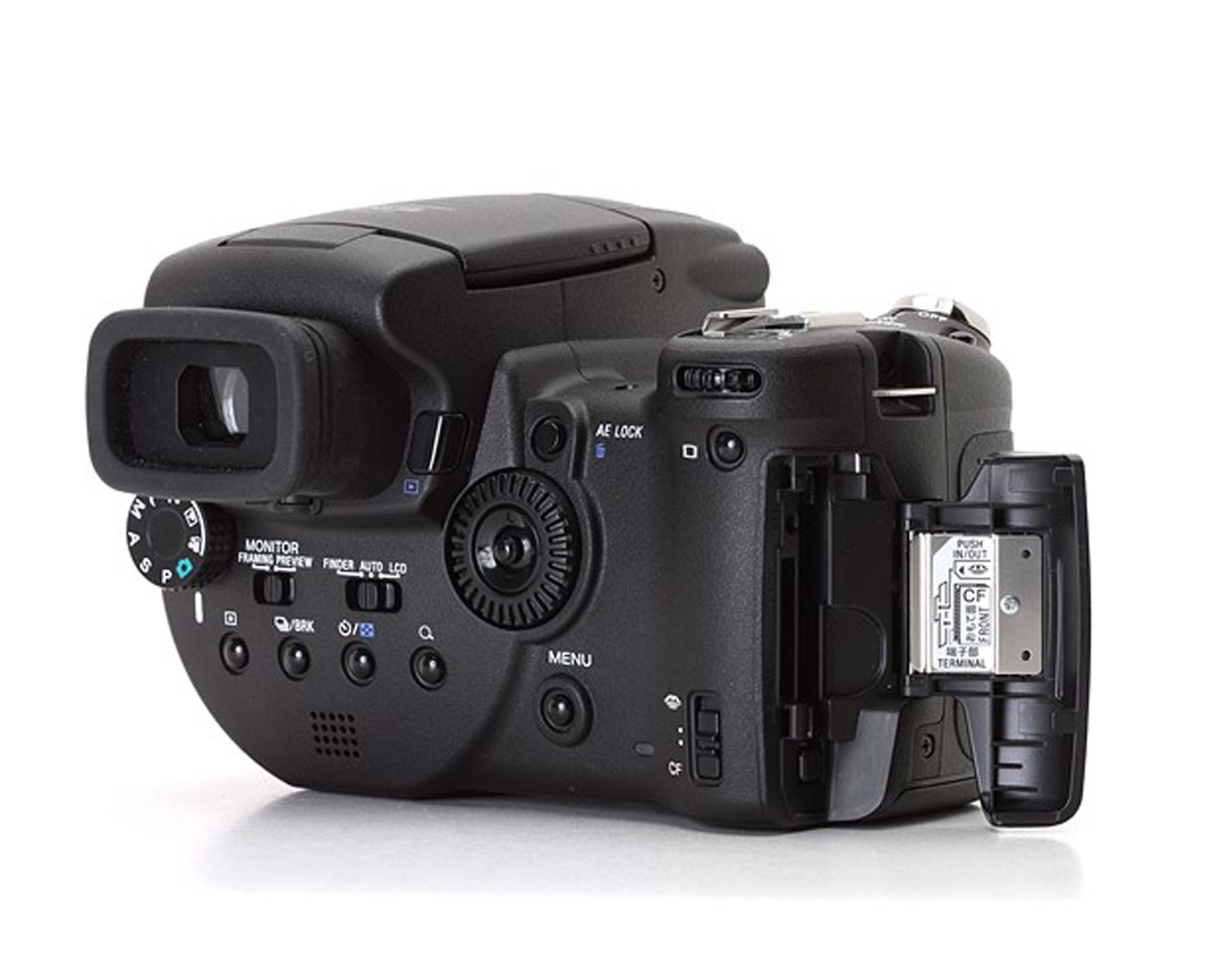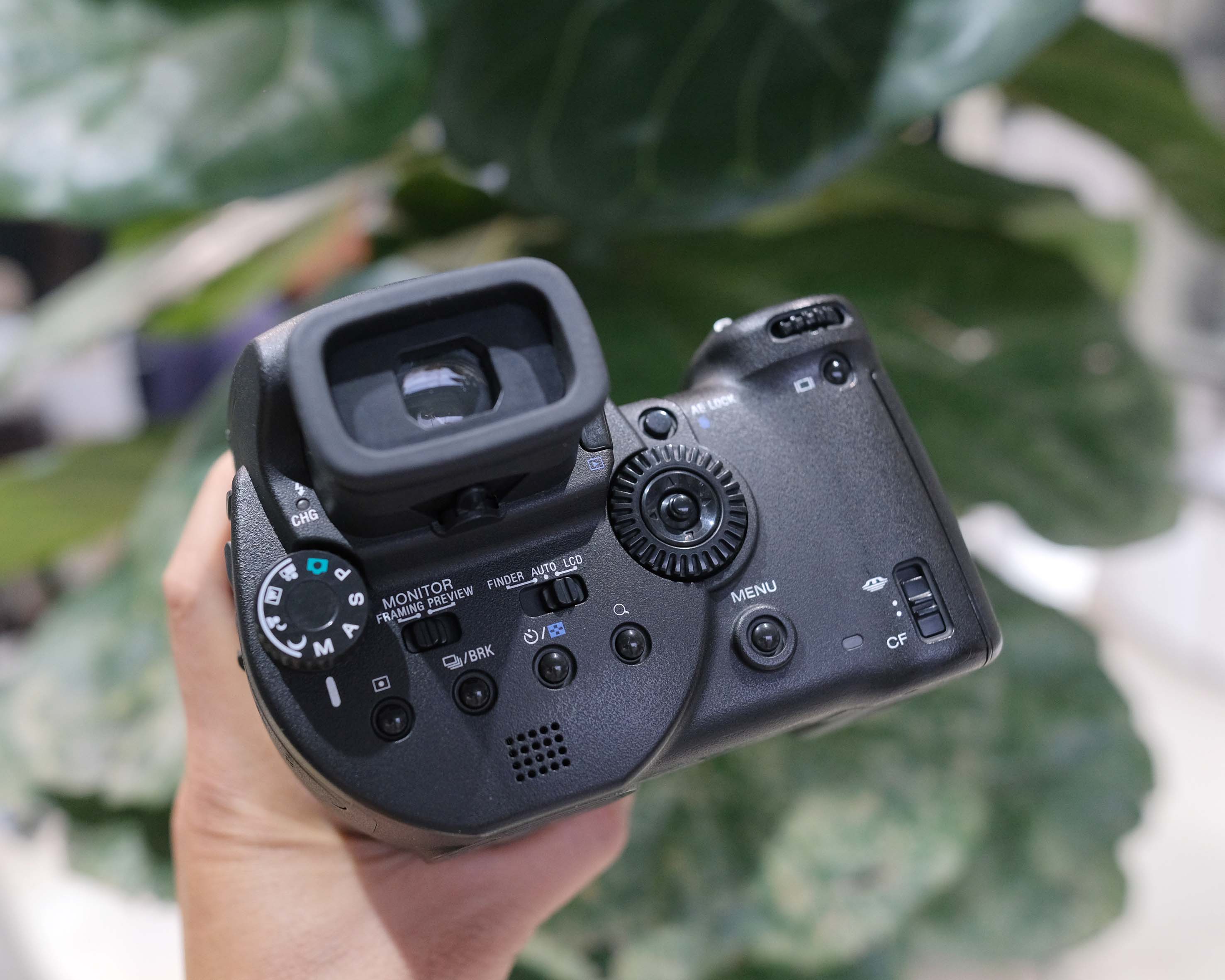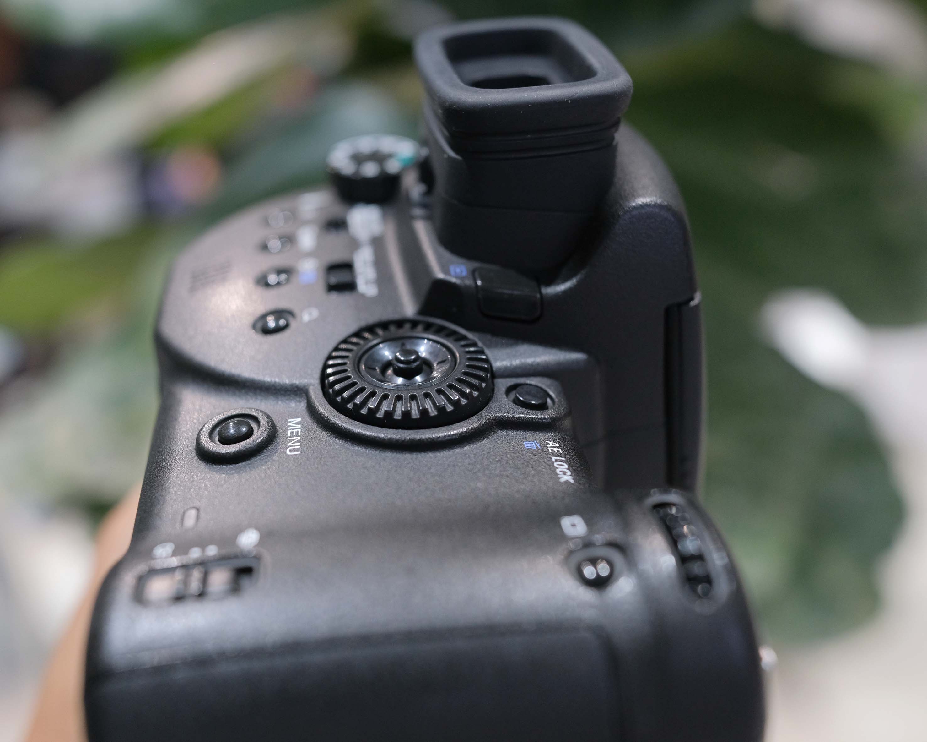 Nếu nhìn DSC-R1 lần đầu, rất có thể bạn sẽ cảm thấy "hoa mắt" trước hệ thống nút dày đặc và được bố trí hơi khác thường của nó, nhưng khi đã dùng quen thì bạn sẽ thấy chúng được bố trí hợp lý. Các nút chọn giá trị bù trừ độ phơi sáng, độ tương phản, chế độ chụp hẹn giờ, chế độ phóng to khi xem lại được đặt ở bên dưới khe ngắm điện tử.