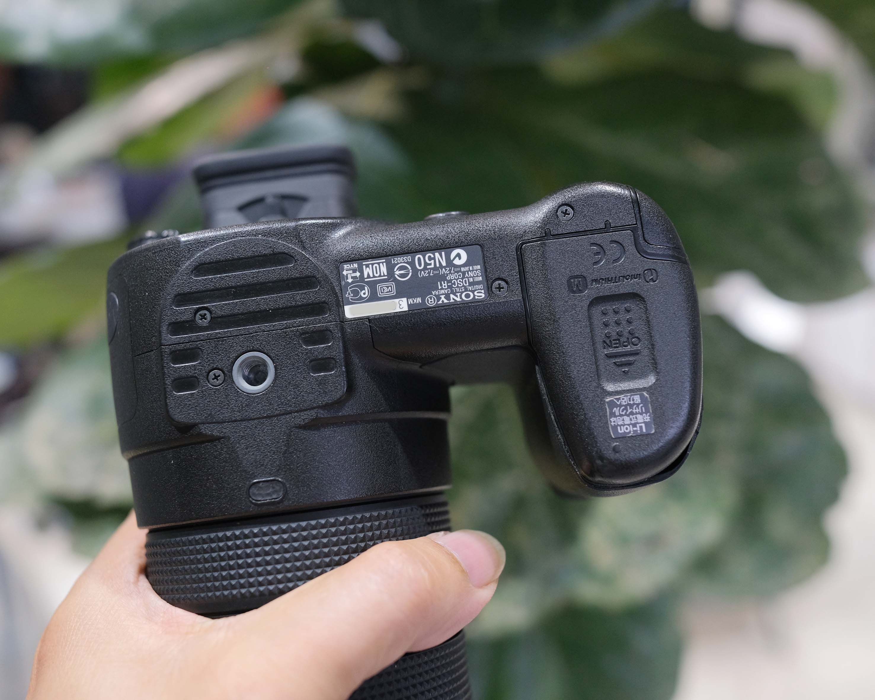 DSC-R1 là một trong những máy ảnh lớn nhất và nặng nhất trong thế giới máy ảnh số nghiệp dư với kích thước 139x168x97 mm và khối lượng 995 g. Chắc chắn là khi đọc những thông số đó, nhiều người sẽ gạt bỏ ngay viễn cảnh sẽ để được DSC-R1 trong túi áo khoác. Do ống kính lớn nên khối lượng của máy dồn về bên trái, nhưng tay cầm bên phải đủ lớn và sâu để bạn có thể cầm máy bằng một tay. Tất nhiên, người sử dụng nên cầm máy bằng hai tay, với tay trái đặt dưới ống kính, khi chụp.