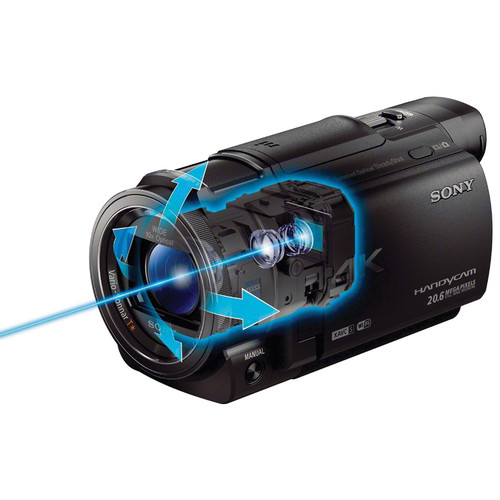 Dù không có cảm biến lớn bằng chiếc AX100, AX33 lại có lợi thế nhờ bộ ổn định hình ảnh quang học Balanced SteadyShot cao nhất của Sony áp dụng cho dòng Handycam. Máy nhỏ hơn 30% và nhẹ hơn 20% so với AX100, tuy nhiên vẫn có đầy đủ các trang bị cần thiết như vòng điều chỉnh tay xung quanh ống kính, chân kết nối phụ kiện Multi-Interface, máy chiếu pico độ sáng 50 lumen. Máy có hệ thống điều khiển của dòng máy quay với các thông số gồm Iris (khẩu độ), GAIN (ISO) và Shutter speed (tốc độ màn trập).