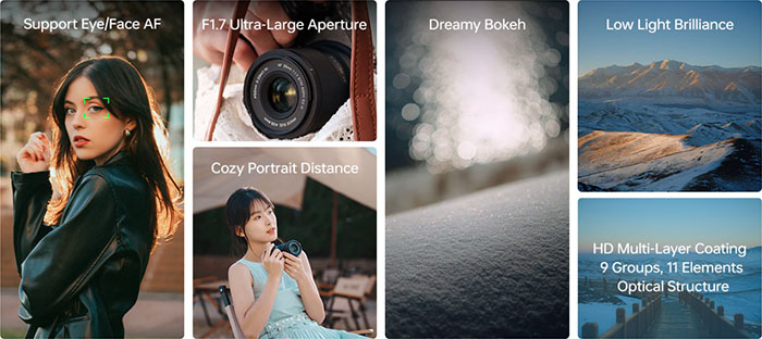 Ống kính này được thiết kế cho máy ảnh APS-C, cung cấp độ dài tiêu cự tương đương toàn khung hình 53mm để chụp ảnh linh hoạt. Ống kính này mang đến góc nhìn tự nhiên, chân thực cho ảnh chân dung, phong cảnh và ảnh chụp hàng ngày.