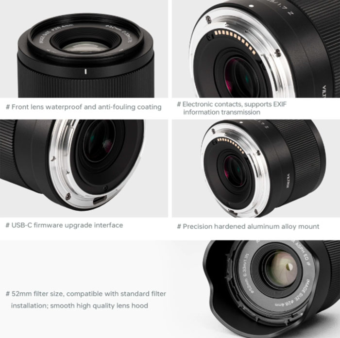 Viltrox AF 35mm f/1.7 Sony E dành cho máy ảnh APS-C ngàm Sony E , cung cấp góc xem linh hoạt trong một thiết kế nhẹ và nhỏ gọn, rất phù hợp với hầu hết các hình thức chụp ảnh, bao gồm phong cảnh, kiến trúc, thiên nhiên và phong cách sống. Ống kính có động cơ lấy nét tự động STM nhanh và yên tĩnh để chụp ảnh và quay video, thậm chí còn hỗ trợ Eye AF với các máy ảnh tương thích. Quang sai quang học và biến dạng hình ảnh được giảm thiểu nhờ các thành phần thấu kính phân tán cực thấp (ED), khúc xạ cao (HR) và phi cầu (ASPH).